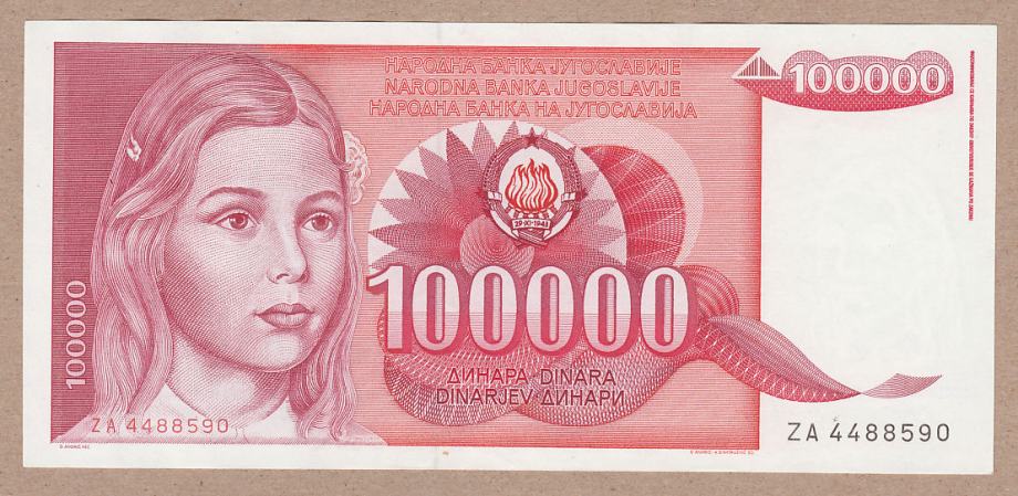 Jugoslavija 100 000 Dinara serija ZA - rjeđe