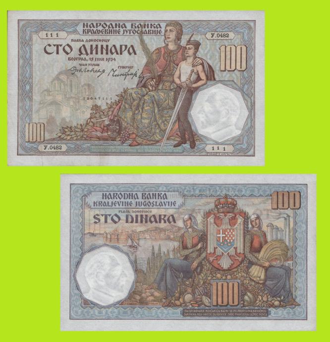 JUGOSLAVIJA 100 DINARA 1934 - SOKOLAC