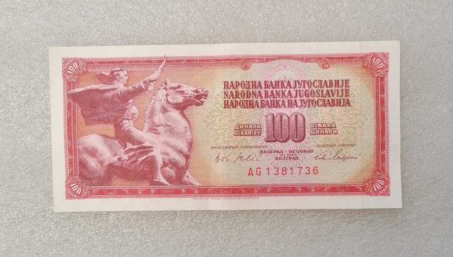 Jugoslavija 100 Dinara 1965. - Štampane-Obične brojke