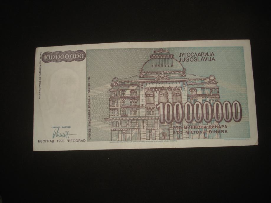 Jugoslavija 100 miliona 1993.(1 kom rabljena)