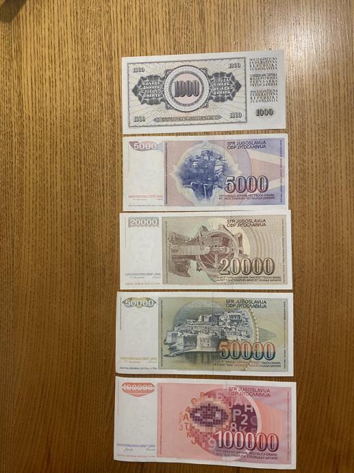 Jugoslavija 1000,5 000,20 000,50 000,100 000 dinara UNC kvalitete