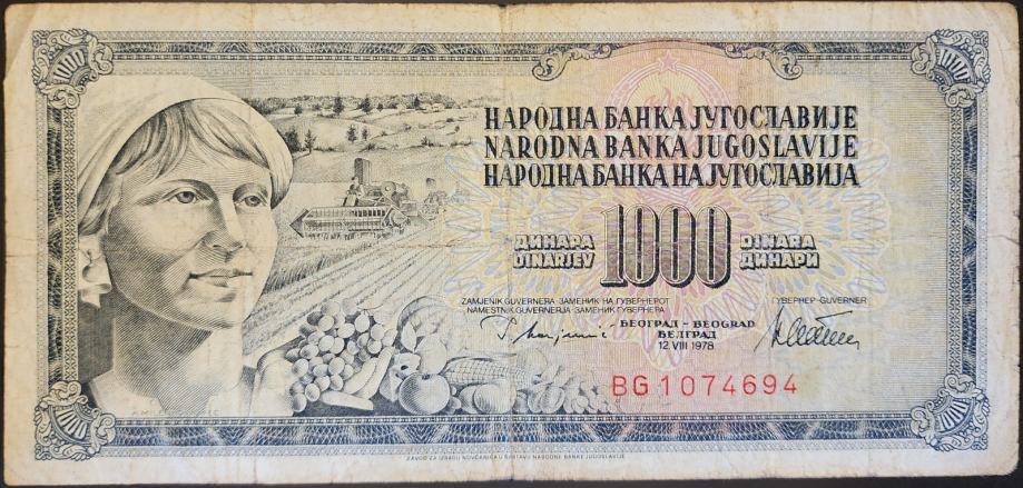 Novčanica: - JUGOSLAVIJA (1978) 1000 Dinara - BG 1074694
