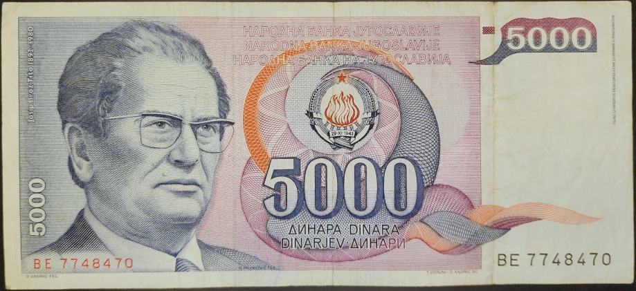 Novčanica: - JUGOSLAVIJA (1985) 5000 Dinara - TITO - BE 7748470