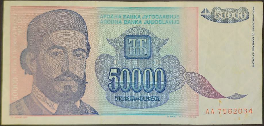 Novčanica: - JUGOSLAVIJA (1993) 50 000 Dinara