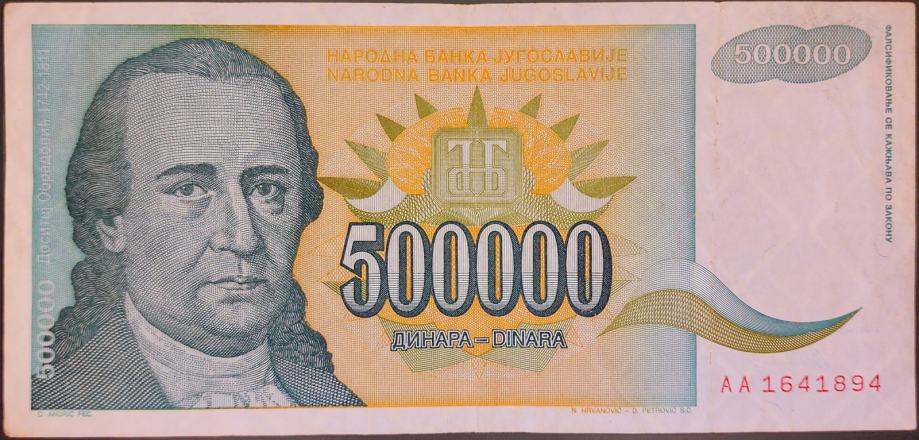 Novčanica: - JUGOSLAVIJA (1993) 500 000 Dinara