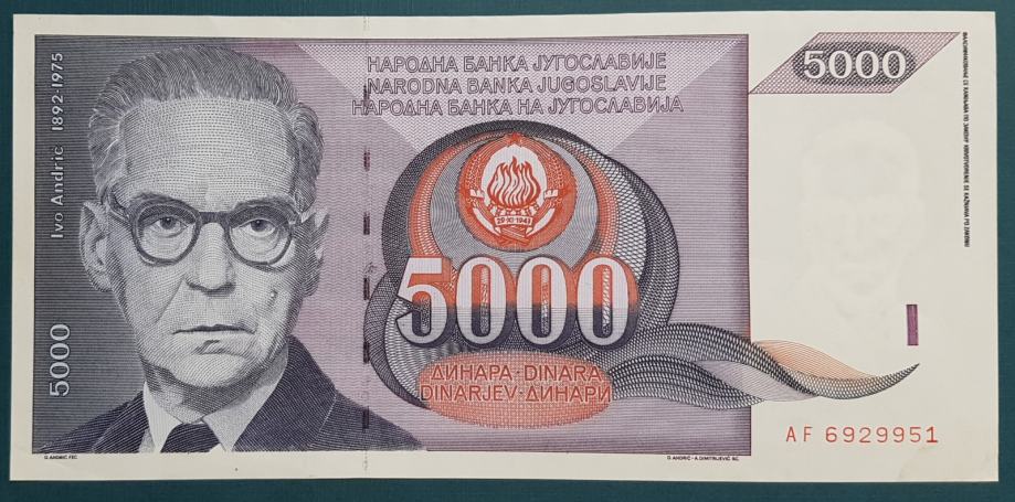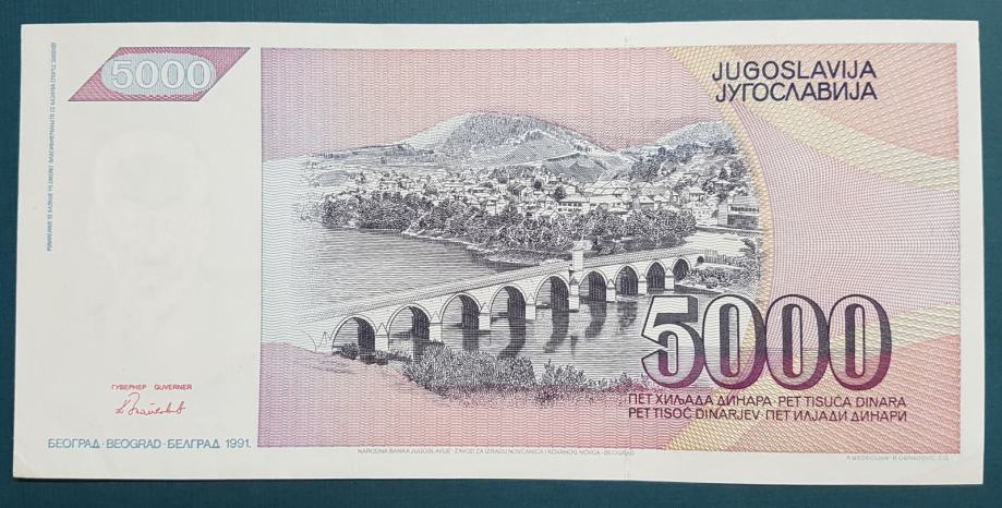 JUGOSLAVIJA, 5 000 DINARA, 1991.