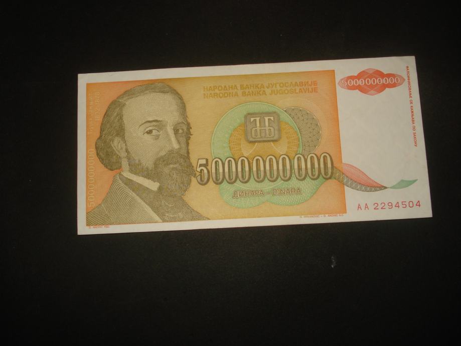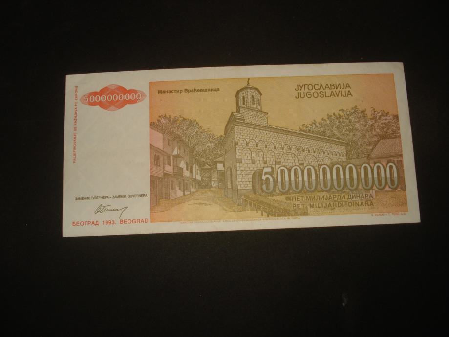 Jugoslavija 5 milijardi 1993.(1 kom rabljena)