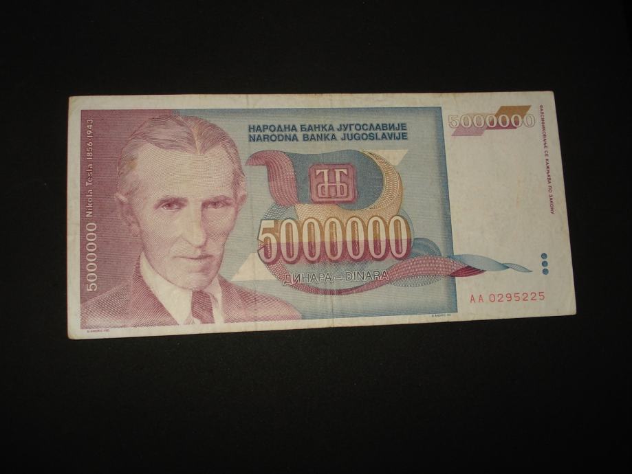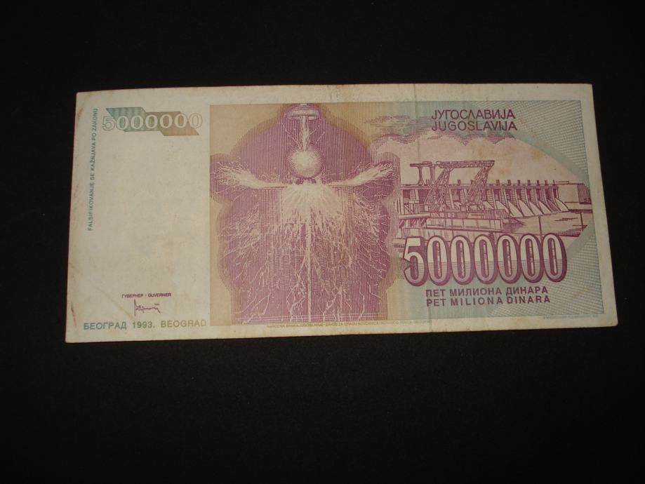 Jugoslavija 5 miliona dinara 1993.(1 kom rabljena)