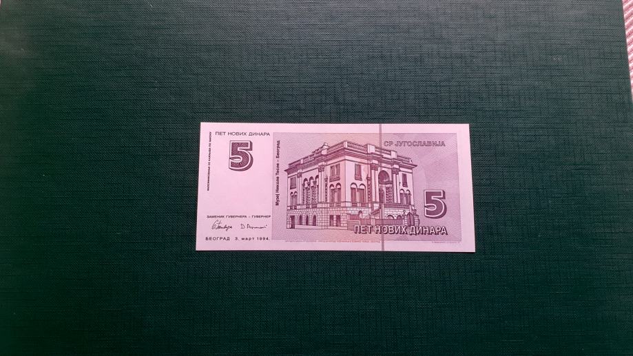 JUGOSLAVIJA 5 NOVIH DINARA 1994