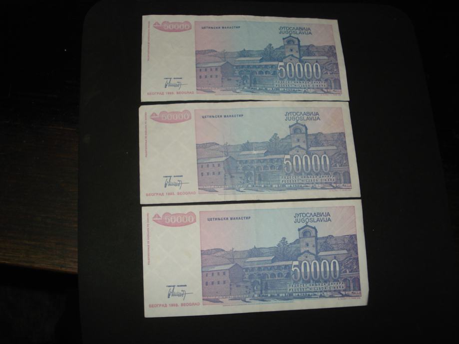 Jugoslavija 50.000 dinara 1993.(3 kom rabljene)