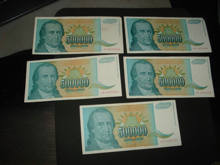 Jugoslavija 500.000 dinara 1993.(5 kom rabljene)