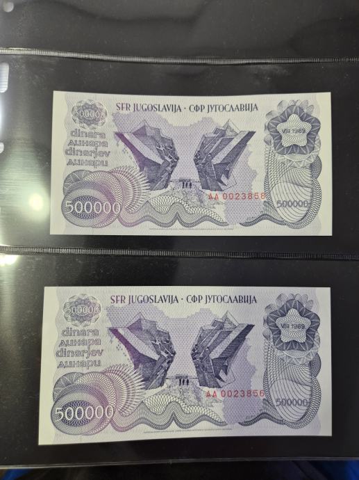 Jugoslavija 500000 Dinara 1989 UNC Novčanica
