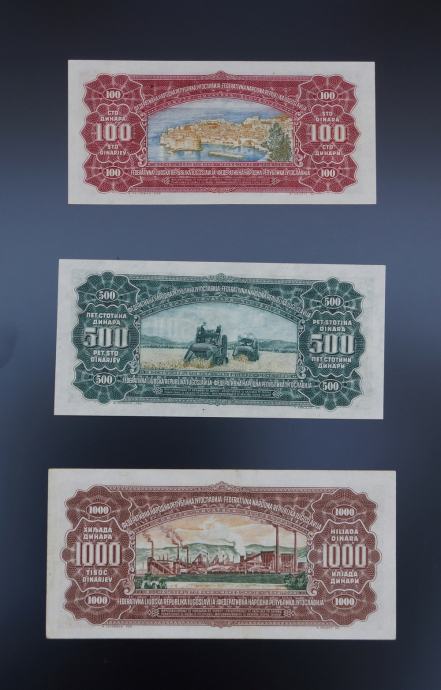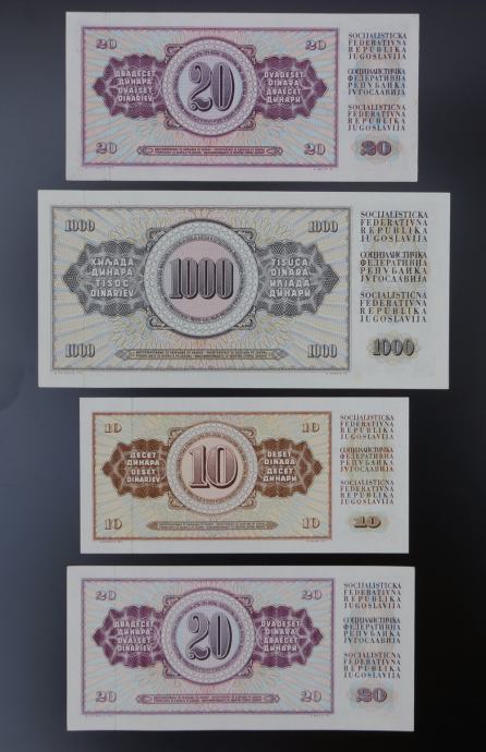 Komplet novčanica Jugoslavije od 1955. do 1991. godine I. i II. dio. Preko 90 % novčanica je UNC kvalitete, ostale aUNC i dobre kvalitete, a kako je i navedeno u popratnom popisu novčanica. U kolekciji ima pojedinih novčanica u više primjeraka: sa šest i sedam slova, obična i barokna slova i brojevi, tanja i deblja numeracija, možda sam neku zaboravio fotografirati. Dobivate komplet novčanica Jugoslavije iz perioda 1955. do 1991. godine koje se nalaze napisane u popratnom popisu novčanica, a koje se nalaze prikazane na fotografijama. Novčanice su višak iz moje osobne kolekcije. Novčanice se mogu doći vidjeti i osobno preuzeti u Bošnjacima. Ne šaljem običnom pošiljkom niti pouzećem. Po vidljivoj uplati, po želji kupca, šaljem po cjeniku HP preporučenu ili vrijednosnu pošiljku, te njezin broj kako bismo ju mogli pratiti od moga slanja do preuzimanja od strane kupca. U slučaju slanja kao vrijednosna pošiljka i gubitka pošiljke vraćam kompletno uplaćeni novac. U slučaju slanja preporučenom pošiljkom i gubitka pošiljke vraćam peterostruki iznos plaćene poštarine. Po vidljivoj uplati predmet šaljem isti ili slijedeći radni dan. Za ostale informacije možete me kontaktirati na mobilni telefon broj: 091 513 92 63. Na SMS poruke ne odgovaram.