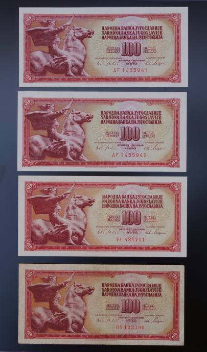100 dinara 1. 8. 1965. 7 brojeva u numeraciji AF1455941 UNC