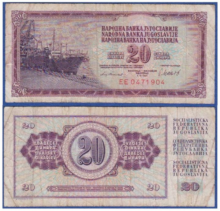 JUGOSLAVIJA YUGOSLAVIA 20 DINARA 1981