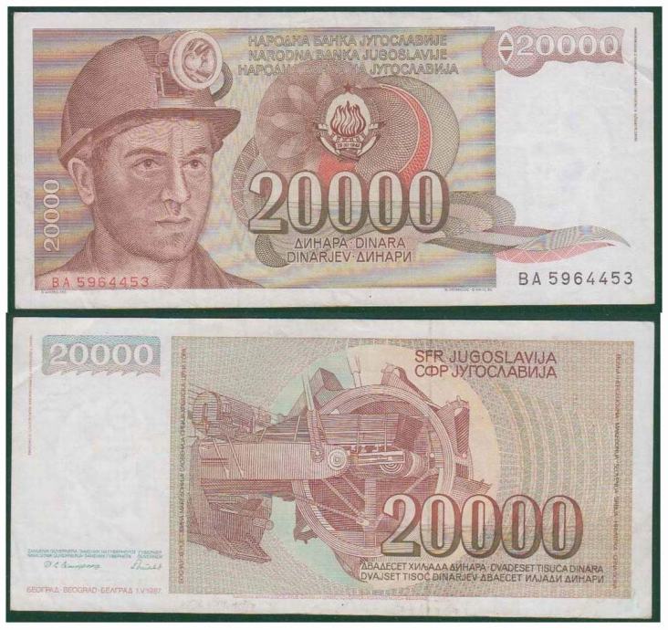 JUGOSLAVIJA YUGOSLAVIA 20000 DINARA 1987