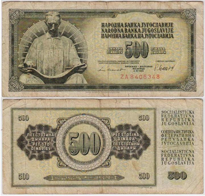 JUGOSLAVIJA YUGOSLAVIA 500 DINARA 1981 (ZA -ZAMJENSKA)