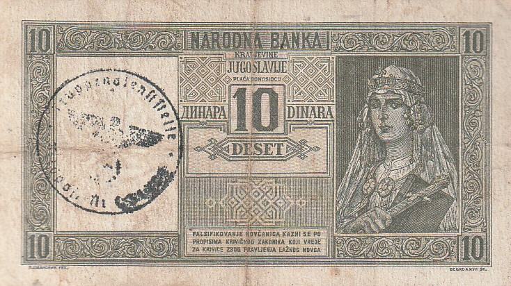 K.JUGOSLAVIJA 10 DIN 1939 CRNI ŽIG OKUPACIJA 1941