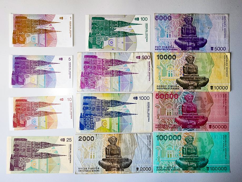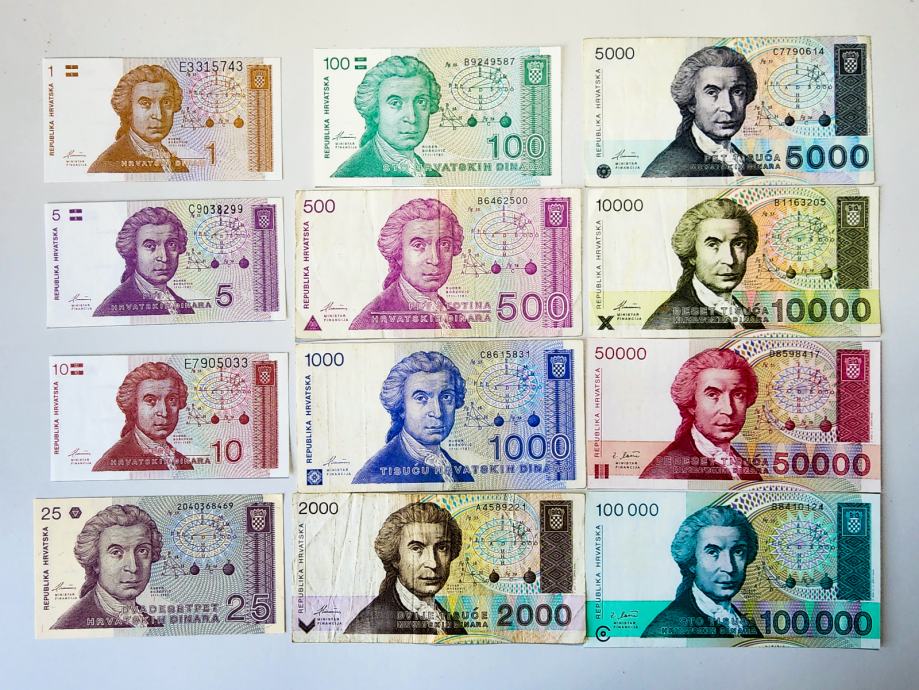 Novčanica: - Komplet HRVATSKIH DINARA - Sve Nominale (12) 1991-93