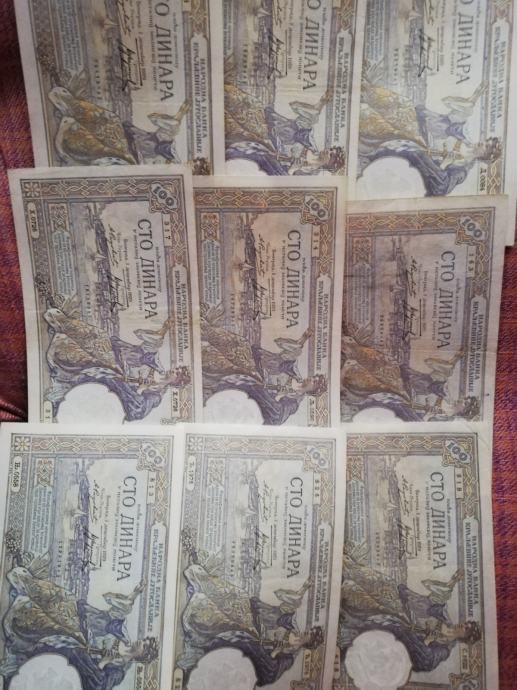 Kraljevina Jugoslava 100 din. 1929. lot 9 kom (xf)