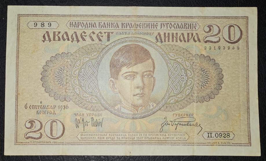 KRALJEVINA JUGOSLAVIJA- 20 DINARA 1936.