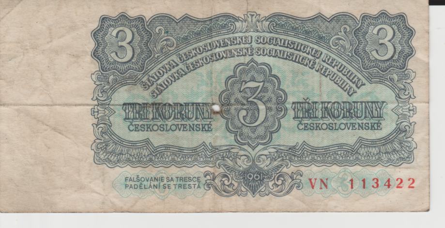 1 x 3,00 krune, 1961. godina: 1,00 €