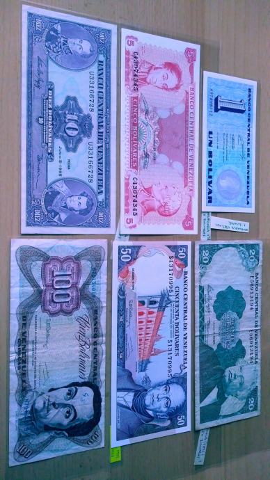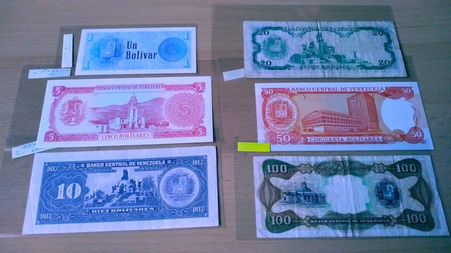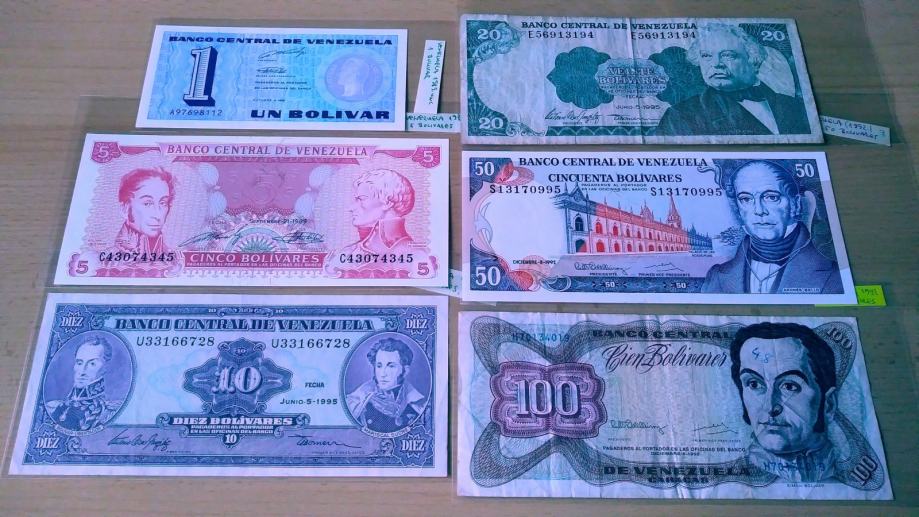 Lijep set starih novčanica Venezuele- 1, 5, 10, 20, 50 i 100 bolivares