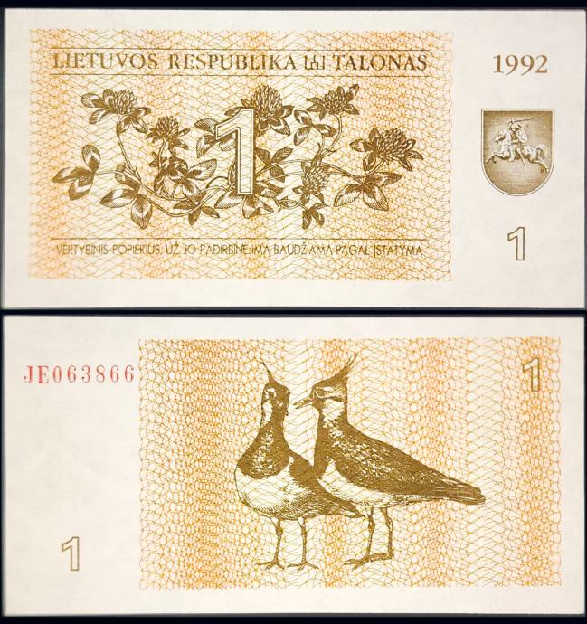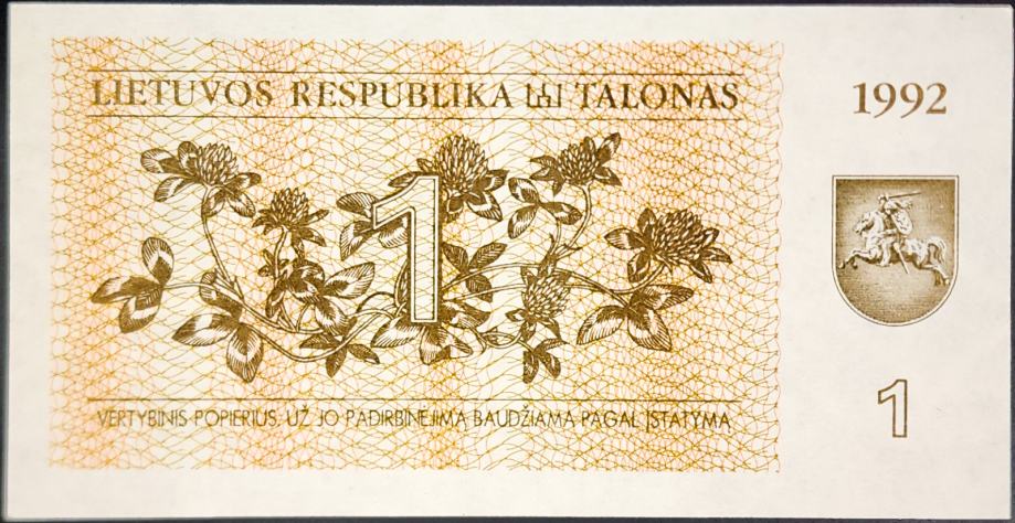 Novčanica: - LITHUANIA / LITVA (1992) 1 Talonas UNC