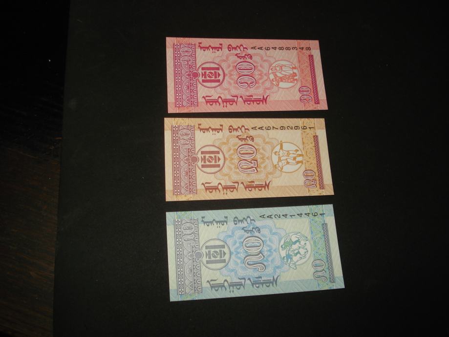 Lot Mongolia 10,20,50 mongo 1993.UNC
