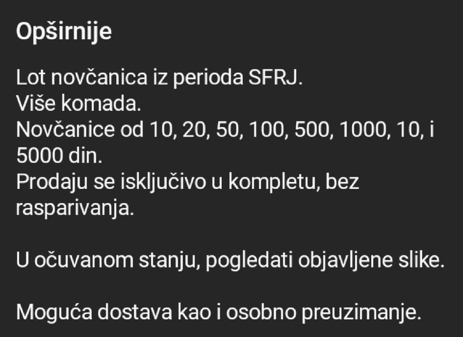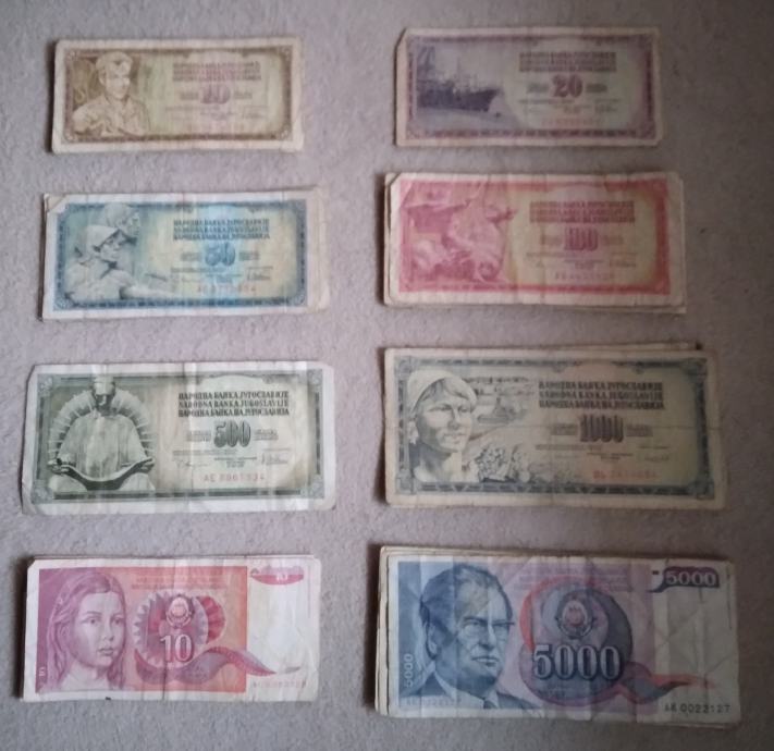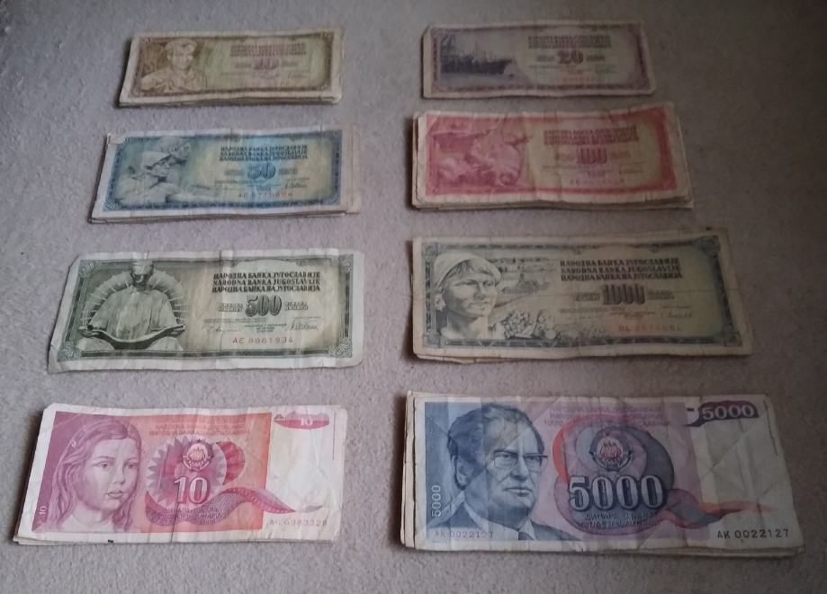 Novčanice od 10, 20, 50, 100, 500, 1000, 10, i 5000 din.