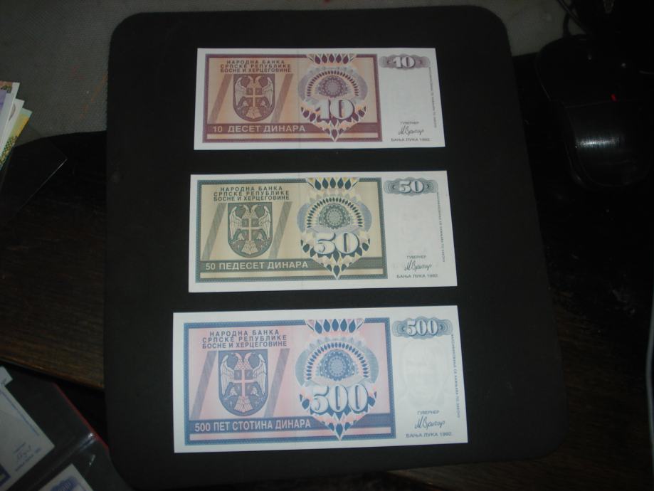 Lot Rep.Srpska B.Luka 10,50,500 dinara 1992.UNC