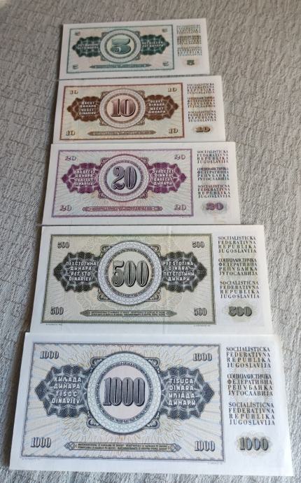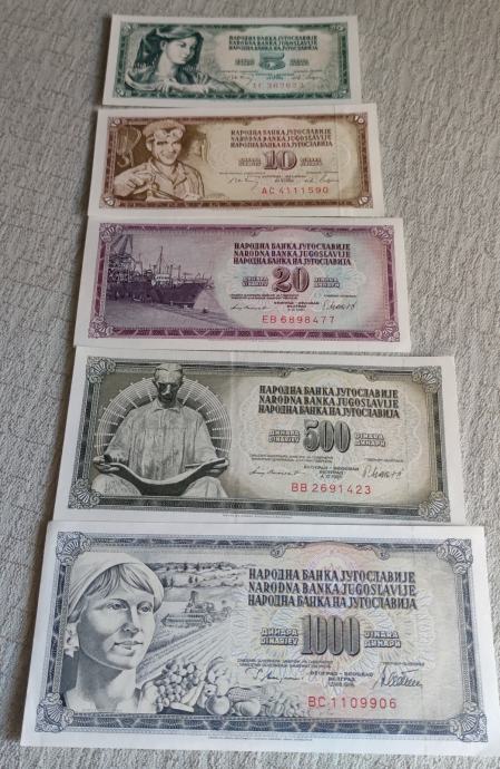 Lot od pet novčanica bivše Jugoslavije (UNC)