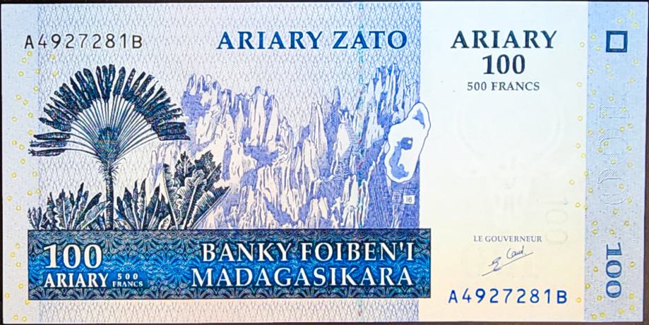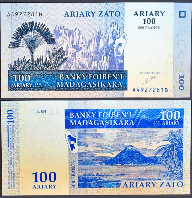 Novčanica: - MADAGASCAR / MADAGASKAR (2004) 100 Ariary / 500 Francs UNC