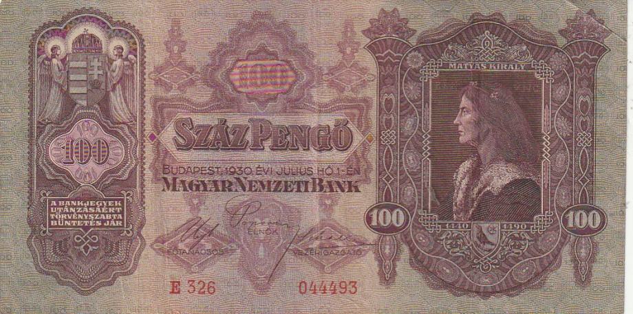 MAĐARSKA 100 PENGO 1930 TRI 4 ZAREDOM UNC