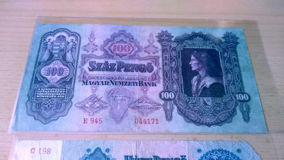 100 pengo 1930.godina, 10 pengo 1936.godina i 20 pengo 1941.godina.