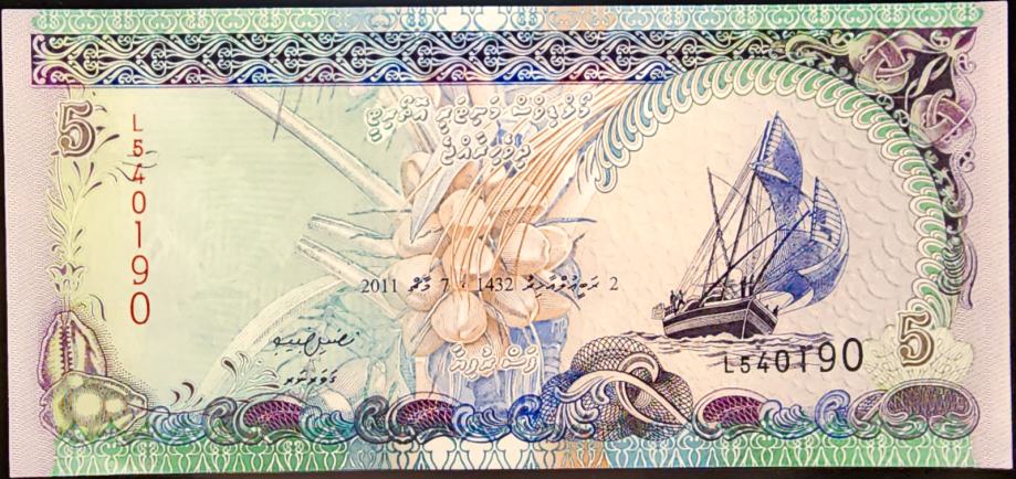 MALDIVES / MALDIVI (2011) 5 Rufiyaa UNC