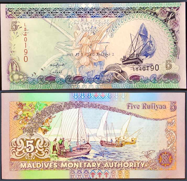 Novčanica: - MALDIVES / MALDIVI (2011) 5 Rufiyaa UNC
