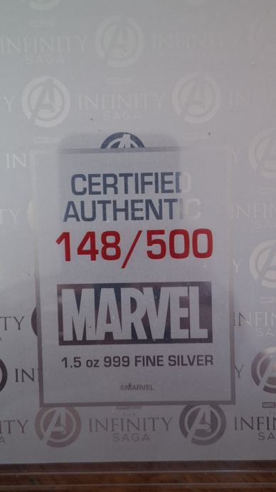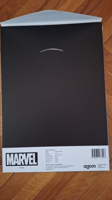 Kultni logotip Osvetnika s detaljima zrcalnog sjaja, a broj folije u Marvel crvenoj boji.