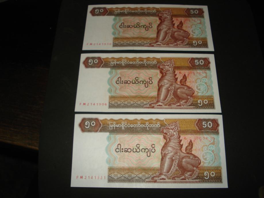Mijanmar / Myanmar 50 kyats 1994.UNC (3 kom)