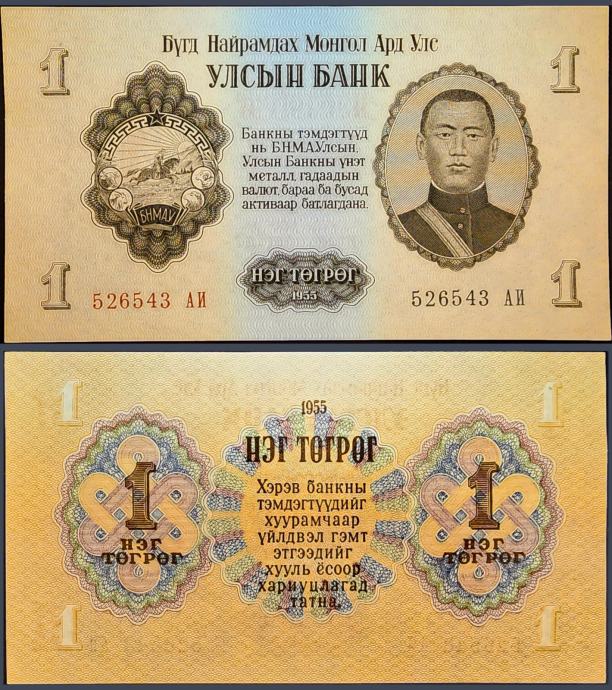 Novčanica: - MONGOLIA / MONGOLIJA (1955) 1 Tögrög UNC