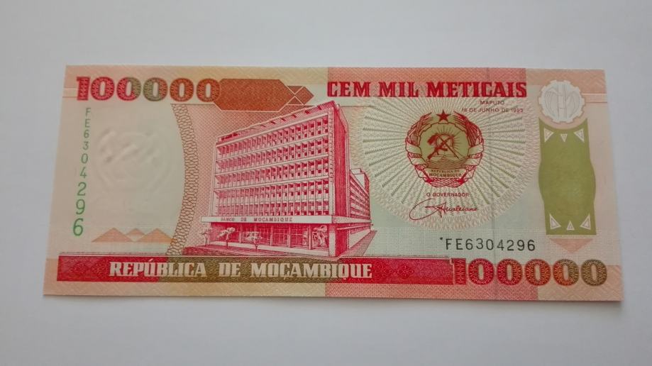 MOZAMBIK 100 000 METICAIS 1993 GODINA UNC