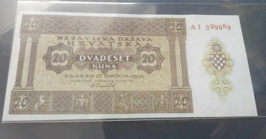 ND H HRVATSKA 20 KUNA 1944 - 2 SLOVA