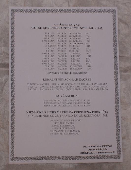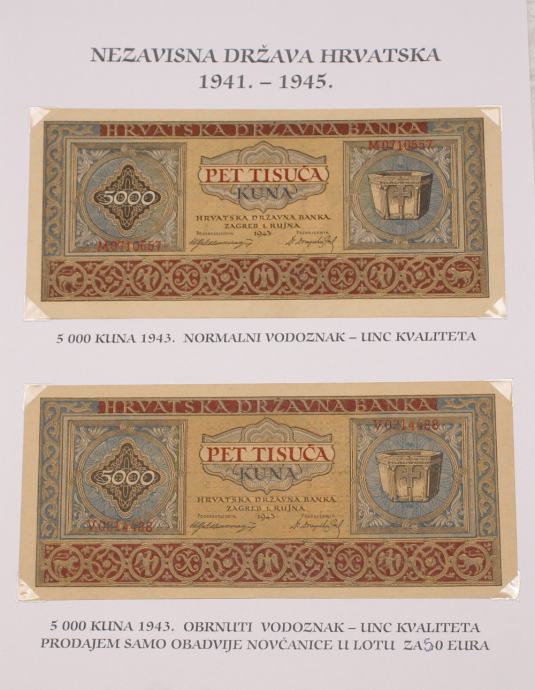 NOVČANICE 1941. - 1945. RASPRODAJA NOVČANICA