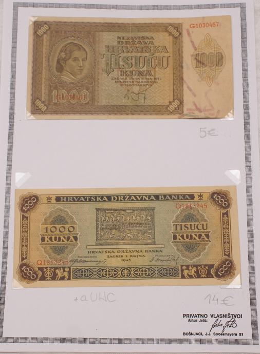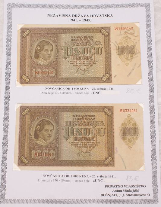 FOTOGRAFIJA 8. 1000 KUNA : GORNJA UNC 25 € I DONJA - PRODANA