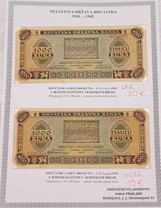 FOTOGRAFIJA 6. 1000 KUNA : GORNJA UNC 25 € I DONJA aUNC 16 €