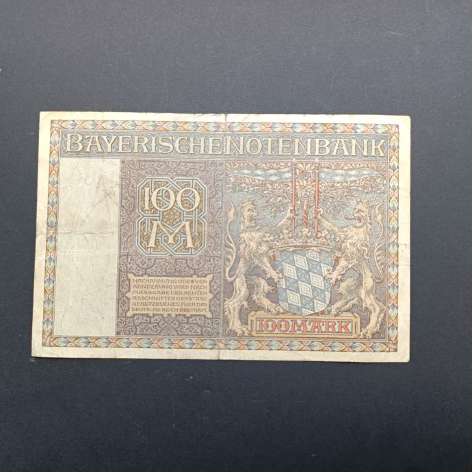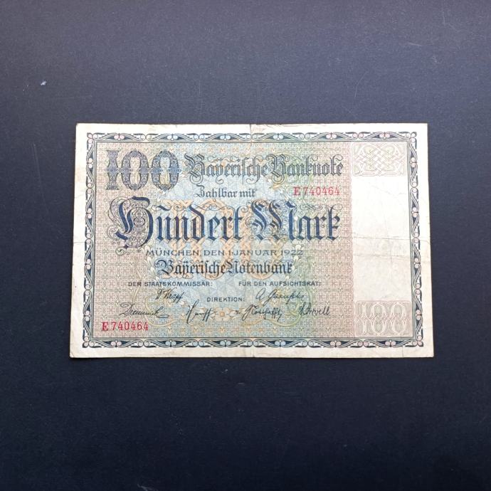NJEMAČKA 100 MARK 1922 BAYERISCHE BANKNOTE