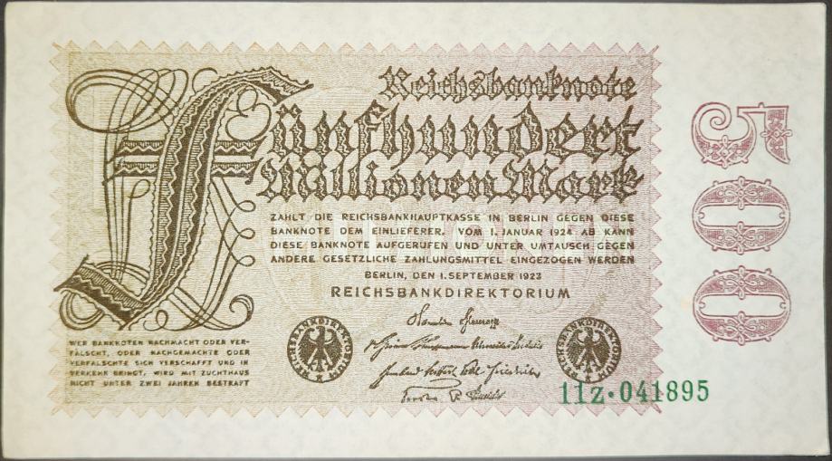 NJEMAČKA (1923) 500 000 000 Mark - UNC - Inflacije