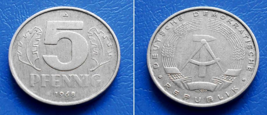 NJEMAČKA DDR GERMANY 5 PFENNIG 1968 A KM. 9.1 - GRB ČEKIĆ I KOMPAS