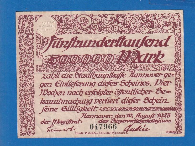 NJEMAČKA REICH 500 000 MARK 1923 047 966 - 4047