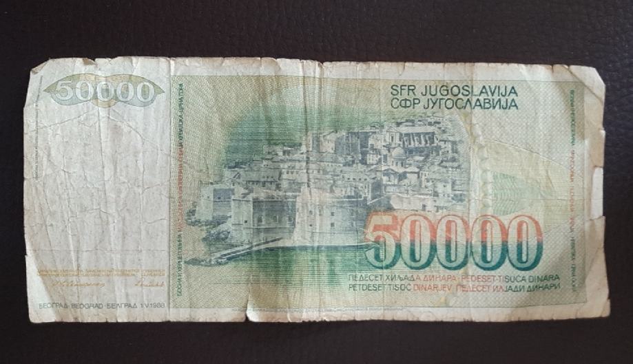 Prodajem novčanica od 50000 dinara iz 1988. Stanje kao na slici.